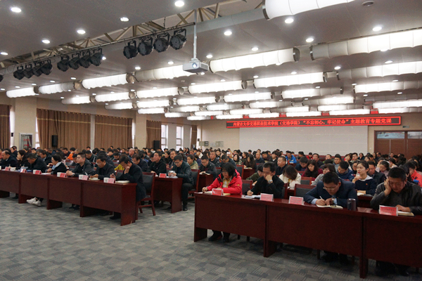 按照學(xué)院“不忘初心、牢記使命”主題教育實(shí)施方案要求和具體安排,2019年11月11日下午,學(xué)校黨委委員、我院黨委書記孫智憑在交通樓多功能廳為全體師生黨員講了一堂生動(dòng)的專題黨課。自治區(qū)主題教育第八巡回指導(dǎo)組副組長倪培霖、成員郝博應(yīng)邀出席指導(dǎo)。學(xué)院領(lǐng)導(dǎo)、副處級(jí)以上干部、思政課教師、輔導(dǎo)員、班主任以及全體師生黨員、入黨積極分子現(xiàn)場聆聽。