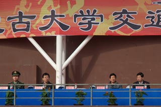 中國人民解放軍陸軍預(yù)備役步兵第三十師營長石道遠(yuǎn)(右圖左二),內(nèi)蒙古玉泉區(qū)人民武裝部軍事參謀菅曉峰中尉(左圖左一),內(nèi)蒙古大學(xué)黨政辦公室副主任溫毅剛(左圖右一),內(nèi)蒙古大學(xué)體育教育部副部長王文杰(左圖右二),黨委副書記、紀(jì)委書記白托婭(右圖左一),副院長武鈞(右圖右二),黨委委員、科研處處長李宏教授(右圖右一),黨委委員、教務(wù)處處長趙志蒙教授(左圖左二) | |