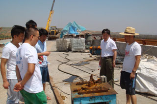 經(jīng)學院安排08級土木工程專業(yè)留學生分別在橋梁工程系主任王智遠副教授、公路工程試驗檢測中心主任趙衛(wèi)平教授、道路工程系滿都拉副教授、橋梁工程系劉潤星副教授、張?zhí)煊罾蠋煹膸ьI下于2012年7月5日前往大路新區(qū)至薛家灣快速通道建設現(xiàn)場進行參觀實習。