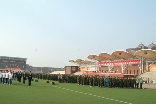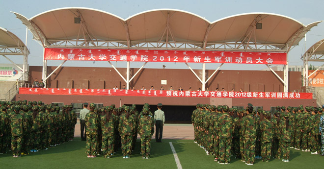 2012年8月25日上午8時(shí),學(xué)院在南校區(qū)操場上舉行2012級(jí)新生軍訓(xùn)動(dòng)員大會(huì)。玉泉區(qū)人民武裝部部長王永軍,中國人民解放軍某部教導(dǎo)員鄧愛民,內(nèi)蒙古預(yù)備役步兵第三十師營長石道遠(yuǎn),我院院長柴金義,常務(wù)副院長董平,黨委副書記、紀(jì)委委書記白托婭,副院長孫恒,黨委委員、教務(wù)處處長趙志蒙出席大會(huì)。新生軍訓(xùn)教官、輔導(dǎo)員、班主任和1100名新生參加了此次大會(huì)。學(xué)工處副處長、團(tuán)委副書記高飛主持大會(huì)。