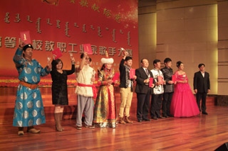 與會(huì)領(lǐng)導(dǎo)和嘉賓為獲獎(jiǎng)選手頒獎(jiǎng)并合影 | |