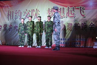 姿態(tài)曼妙的頂碗舞拉開了晚會序幕,場面盛大的晚會以歌曲《我的未來不是夢》《站起來》,詩朗誦《獻給2012的學子》,舞蹈《kill the beats》,小品《軍訓小趣》表現(xiàn)了“等待,夢想的花開”的主題;以歌曲《想你的夜》,樂器演奏《軍港之夜》,舞蹈《碧波孔雀》,歌曲《護花使者》,舞蹈《kiss fire》表現(xiàn)了“舞動,美麗的青春”的主題;以歌曲《我的父親是牧馬人》,小品《推銷》,街舞《舞動青春》,相聲《姑娘小伙別這樣》表現(xiàn)了“譜寫,騰飛的贊歌”的主題,晚會在軍樂團的演奏、學生聯(lián)合會合唱的《走向復(fù)興》《中國,中國,鮮紅的太陽永不落》圓滿落下了帷幕。眾多的優(yōu)秀節(jié)目,讓大家感受到了青春澎湃的力量,給2012級新生留下了美好的回憶。同學們的表演精彩紛呈,觀眾掌聲熱烈,兩個小時的晚會始終洋溢著熱烈祥和的氛圍。