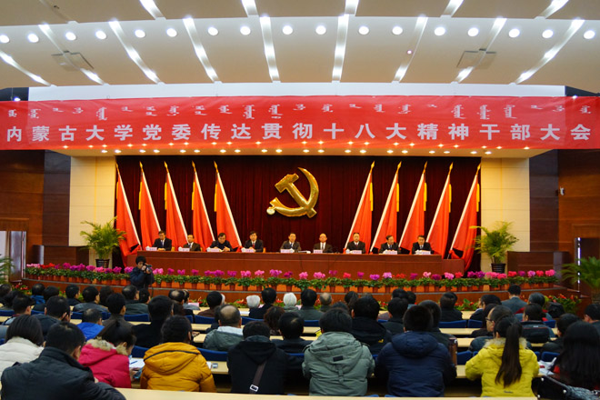 在全校干部大會上,侯元書記介紹了黨的十八大盛況;傳達(dá)了十八大的重要精神,并結(jié)合實際對十八大報告重要內(nèi)容進(jìn)行了解讀;傳達(dá)了內(nèi)蒙古自治區(qū)黨委書記胡春華在黨的十八大內(nèi)蒙古代表團(tuán)全體會議上的講話精神和教育部黨組關(guān)于教育系統(tǒng)認(rèn)真學(xué)習(xí)貫徹黨的十八大精神的通知精神。