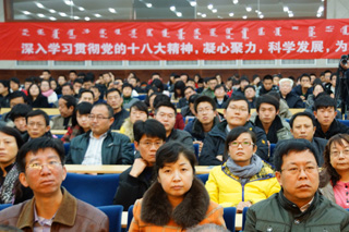 為了深入學(xué)習(xí)貫徹黨的十八大精神,把我校廣大師生員工思想和行動統(tǒng)一到黨的十八大精神上來,把力量凝聚到實現(xiàn)黨的十八大確定的各項任務(wù)上來,努力辦好人民滿意的教育,推動學(xué)??茖W(xué)發(fā)展,學(xué)校于2012年11月20日下午3:00在學(xué)術(shù)會議中心9號會議室召開全校傳達(dá)貫徹黨的十八大精神干部大會。