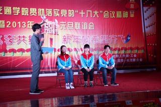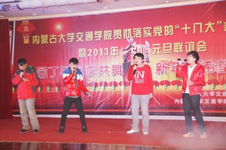 2012年12月26日晚7:00,交通學院元旦晚會“園丁與桃李共舞,新年同夢想齊飛”在交通樓多功能廳A453隆重舉行。