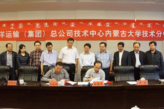 最后,內(nèi)蒙古大學(xué)副校長(zhǎng)班士良教授和中遠(yuǎn)集團(tuán)研發(fā)中心主任白培軍就中遠(yuǎn)集團(tuán)研發(fā)中心內(nèi)蒙古大學(xué)分中心成立簽訂協(xié)議,并為分中心揭牌。內(nèi)蒙古大學(xué)交通學(xué)院科技處處長(zhǎng)李宏教授介紹了分中心的組成人員。