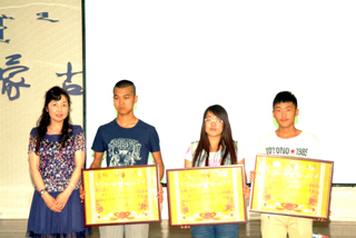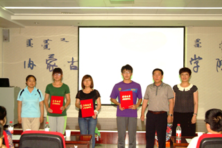 學(xué)工處副處長(zhǎng)、團(tuán)委副書(shū)記高飛(左一)、黨委副書(shū)記、紀(jì)委書(shū)記白托婭(中)、學(xué)工處副處長(zhǎng)馮俊杰(右一) |