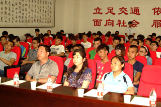 學(xué)工處(團(tuán)委)組織宣傳科副科長(zhǎng)董小紅(左一)、運(yùn)輸工程系學(xué)工辦副主任高文喜(中)、運(yùn)輸工程系黨總支副書(shū)記于憲鵬(右一) |