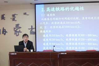 徐維祥教授從高速鐵路發(fā)展概況開篇,首先介紹了高速鐵路速度快、運能大、安全性高、準(zhǔn)確性高、能耗少、占地省、環(huán)境污染輕、舒適度高、效益好等九大優(yōu)點,而中國的國情又特別適合發(fā)展高速鐵路;其次介紹了中國高速鐵路“四縱四橫”的發(fā)展規(guī)劃藍(lán)圖和高速列車的十大關(guān)鍵技術(shù);最后詳細(xì)介紹了高鐵安全管理系統(tǒng)和高鐵旅客服務(wù)系統(tǒng)。