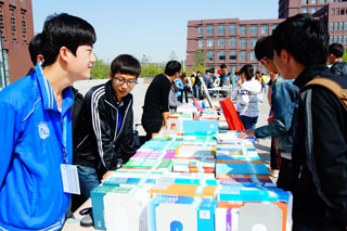 本次活動(dòng)持續(xù)2天在南校區(qū)圖書館樓前廣場(chǎng)舉行,主要內(nèi)容有:組織各大出版社書目參展,讓師生選出自己喜歡和需要的書籍,由圖書館訂購所選圖書;現(xiàn)場(chǎng)師生在宣傳橫幅上簽名,弘揚(yáng)讀書文化;參加“淘書會(huì)友”活動(dòng),進(jìn)行圖書交換以提高圖書利用率等。