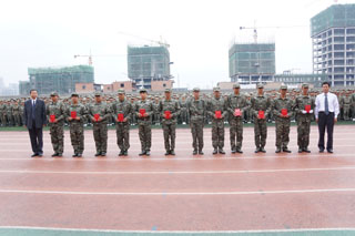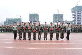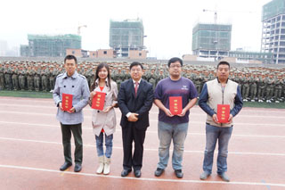 我院六個連隊(14連、15連、19連、21連、23連、24連)獲得優(yōu)秀連隊稱號;五個連隊(15、16、18、19、22連)獲得內(nèi)務衛(wèi)生優(yōu)秀連隊稱號;學工處學生管理科科長崔建軍獲得優(yōu)秀學院指導員稱號;八名教官張文博、賀鵬程、王冠斌、王浩天、王劍飛、侯宇杰、楊凱、周廣華獲得優(yōu)秀連長稱號;八名教師苗冬梅、白宇杰、任建偉、張永亮、周雪瓊、劉婷、趙廷斌、董小紅獲得優(yōu)秀連隊指導員稱號;三十二名新生獲得軍事技能訓練優(yōu)秀標兵稱號。