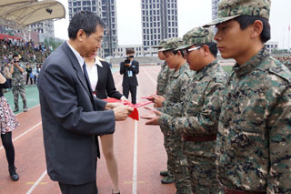 在此起彼伏的“同學們好”、“首長好”、“同學們辛苦了”、“為學校增光”的口號中,我校黨委書記朱炳文、校長陳國慶檢閱了學生各團軍訓方隊,同學們以標準的軍姿、飽滿的熱情迎接了領導的檢閱。