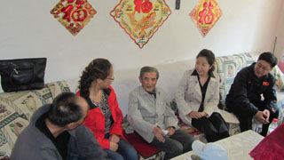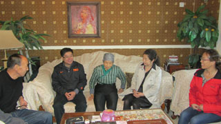 | 學院黨委副書記、紀委書記白托婭(右二)看望慰問拉巴哈(右三)老同志,黨群工作部部長李廣武(右一),黨群工作部副部長、工會主席李春燕(右四),離退辦副主任曹鐵強(右五)陪同。 |