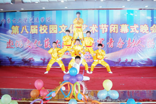 ![]() 為進(jìn)一步豐富交通學(xué)院的校園文化生活,營造積極向上,清新高雅,健康文明的校園文化氛圍,學(xué)工處(團(tuán)委)組織開展了為期一個月的校園文化藝術(shù)節(jié)活動。5月28日,閉幕式晚會在交通學(xué)院多功能廳A453舉行。