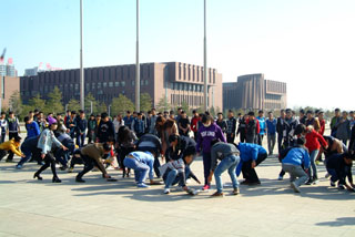 2014年11月4日中午,溫暖的陽(yáng)光照射在內(nèi)蒙古大學(xué)南區(qū)廣場(chǎng),交通學(xué)院學(xué)工處(團(tuán)委)學(xué)生聯(lián)合會(huì)的心理健康教育部正在組織學(xué)生參與一場(chǎng)愉悅身心的團(tuán)體游戲項(xiàng)目比拼。“加油!”“加油!”吶喊助威聲不絕于耳。