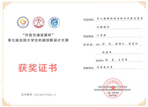 我院選送的作品《單人輔助操控電助力式載運(yùn)家電爬樓小車》(由機(jī)械工程系學(xué)生劉成、張?jiān)鋈?、趙重陽(yáng)、趙曉輝設(shè)計(jì)制作,陸盈、王奇?zhèn)ダ蠋熤笇?dǎo))參加了本次決賽階段角逐,獲得了大賽二等獎(jiǎng)。