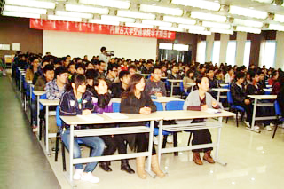 交通運輸廳副廳長馬萬斌、科技處處長劉鳳林、規(guī)劃處副處長李喜、辦公室副主任康寧、辦公室主任科長高曉煒,以及我院領(lǐng)導(dǎo)、中心組成員、各系部及職能部門負(fù)責(zé)人和教師、學(xué)生共300多人在多功能廳聽取了報告。