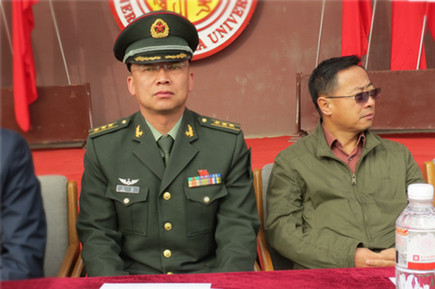 內(nèi)蒙古陸軍預備役第30師副參謀長王磊上校 (左)、學院常務(wù)副院長董平 學校黨政辦副主任、南校區(qū)管委會辦公室主任方麗英
