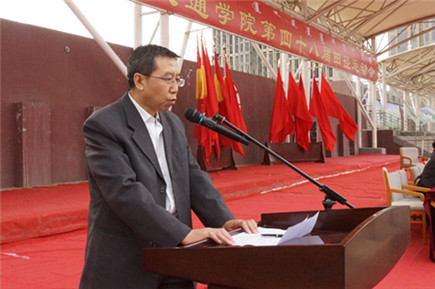 黨委副書記、紀委書記白托婭代表學院黨政領(lǐng)導致開幕詞。她說,一年一度的田徑運動會是學院貫徹“立德樹人”教育思想,全面落實素質(zhì)教育,響應團中央“走下網(wǎng)絡(luò)、走出宿舍、走向操場”倡議的重要載體,是對全院群眾性體育工作成果和師生員工運動水平的一次檢閱,也是對廣大師生員工競爭意識、團隊精神、頑強意志的一次考驗,更是全院師生員工精神風貌的一次全面展示,已經(jīng)成為校園生活的重要組成部分。高等學校作為國家高層次人才培養(yǎng)的重要基地,同學們的體質(zhì)與健康事關(guān)國家和民族的未來。她號召大家,要以此次運動會為契機,繼續(xù)廣泛開展“陽光體育”,積極倡導“三走”,多種方式加強校園體育文化建設(shè),積極營造人人關(guān)心、人人參與體育活動的氛圍,我們堅信,在學校黨委和學院黨委的堅強領(lǐng)導下,我院全體師生員工將以更加健康的體魄,更加昂揚的姿態(tài),更加飽滿的熱情投入到學院各項事業(yè)的建設(shè)中來!