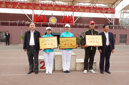 學院黨委副書記、院長柴金義為獲得學生團體總分前八名頒獎 學院黨委副書記、紀委書記白托婭為獲精神文明先進集體頒獎