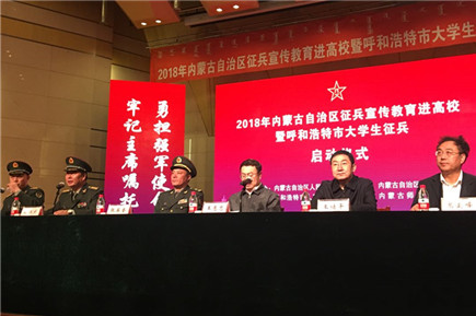 4月25日,由自治區(qū)征兵辦公室和自治區(qū)教育廳主辦,呼和浩特市征兵辦公室和內(nèi)蒙古師范大學(xué)聯(lián)合承辦的“2018年內(nèi)蒙古自治區(qū)征兵宣傳教育進高校暨呼和浩特市大學(xué)生征兵啟動儀式”在內(nèi)蒙古師范大學(xué)舉行,內(nèi)蒙古軍區(qū)副司令員張英奎,自治區(qū)教育廳副廳長王惠忠,市委常委、警備區(qū)政委孫炳文,副市長王繼平,內(nèi)蒙古軍區(qū)動員局副局長唐洪青,內(nèi)蒙古師范大學(xué)黨委副書記、紀(jì)委書記高云峰,呼和浩特警備區(qū)副司令員孫振國出席啟動儀式。來自內(nèi)蒙古軍區(qū)、自治區(qū)教育廳和駐呼各高校有關(guān)負(fù)責(zé)人,以及各級兵役機關(guān)和內(nèi)蒙古師范大學(xué)師生代表等共約600人參加了啟動儀式。