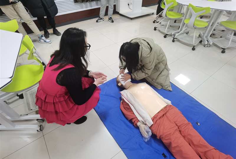 工程管理系學(xué)工辦主任(團(tuán)總支書記)、國家二級心理咨詢師、主管護(hù)師:張雪松現(xiàn)場輔導(dǎo)師生心肺復(fù)蘇