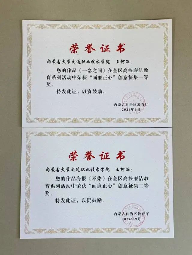 本次征集活動旨在通過藝術(shù)形式深化廉潔教育內(nèi)涵。王柯涵的兩件作品構(gòu)思精巧、主題鮮明,以視覺語言生動傳遞了廉潔自律的價值理念,充分展現(xiàn)了學(xué)院在推進廉政文化建設(shè)和師德師風(fēng)教育方面取得的扎實成果。
